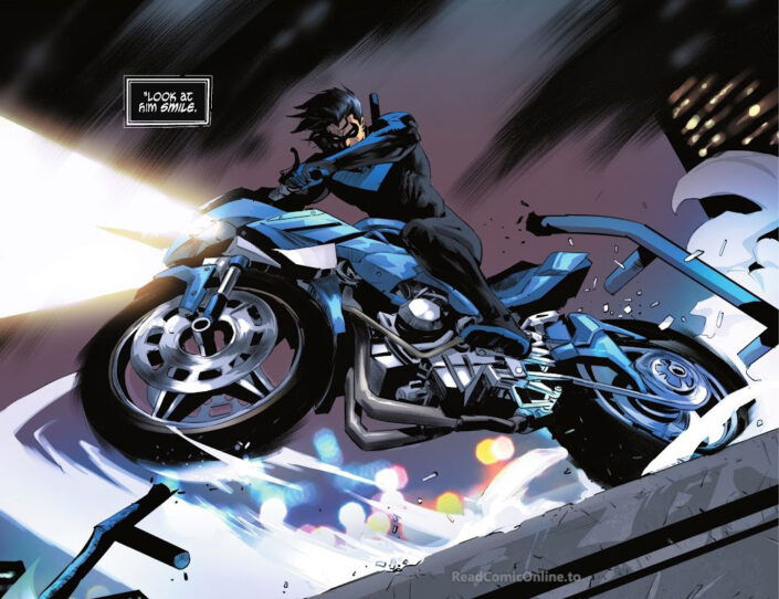 It’s a new day in Blüdhaven! The protector of Blüdhaven has to deal with rival gangs, escalating violence, and a nightmare circus in his home while still working with the Titans. Those stories take place in a short period of time. Batman made a short appearance at some point, apparently still wearing his old costume (from Chip Zdarsky’s era).