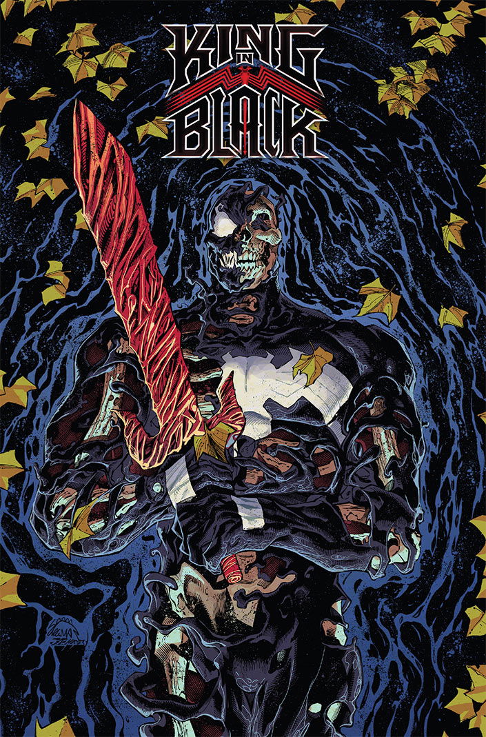 Collects King In Black #1-5; King In Black: Immortal Hulk, Iron Man/Doctor Doom, Black Knight, Marauders, Black Panther, Captain America, Wiccan And Hulkling, Spider-Man, Scream, and Ghost Rider; King In Black: Gwenom Vs. Carnage #1-3; King In Black: Namor #1-5; King In Black: Planet Of The Symbiotes #1-3; King In Black: Return Of The Valkyries #1-4; King In Black: Thunderbolts #1-3; Symbiote Spider-Man: King In Black #1-5; Black Cat (2020) #1-3; Daredevil (2019) #26-27; Deadpool (2019) #10; Fantastic Four (2018) #29-30; Guardians of The Galaxy (2020) #10; Miles Morales: Spider-Man #23; S.W.O.R.D. (2020) #2-4; Savage Avengers (2019) #17-19; Spider-Woman (2020) #7-8; The Union #1-2; Venom (2018) #31-34; And King In Black Handbook.