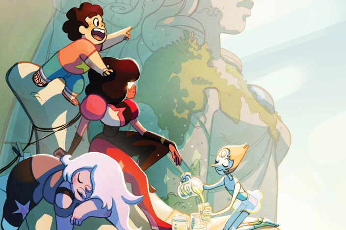 Adventure Time‘s influence extends beyond television into comics (obviously), but also video games, and other media, expanding the world of Ooo through original stories, alternate continuities, and explorations of secondary characters. The first comic book series came from Boom! Studios and was launched with Ryan North as a writer, with art by Shelli Paroline and Braden Lamb. It was a success and led to its own spin-offs.